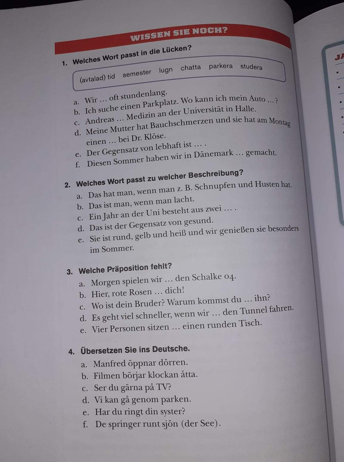 Hausaufgabe: Immer Freitag bis Freitag, Glosmaskinen und Ljudmaskinen an www.liber.se sind behilflich.